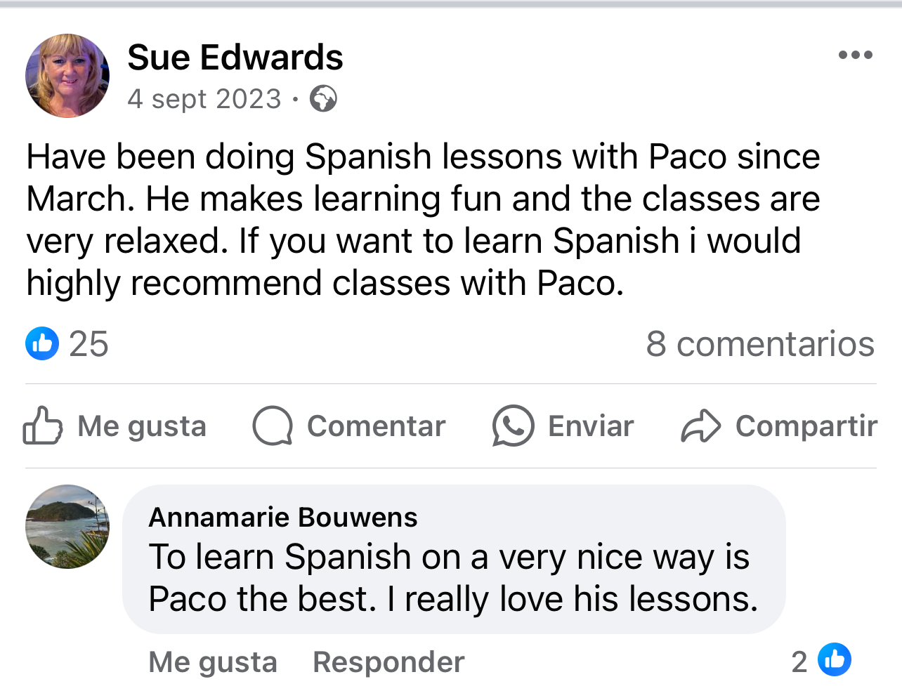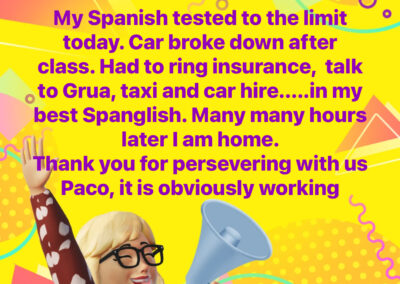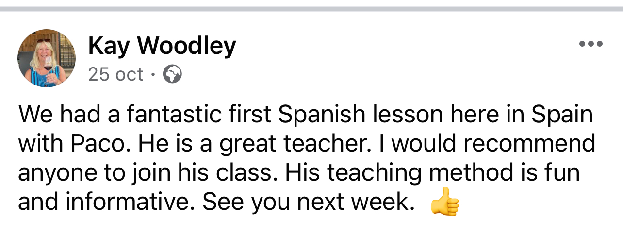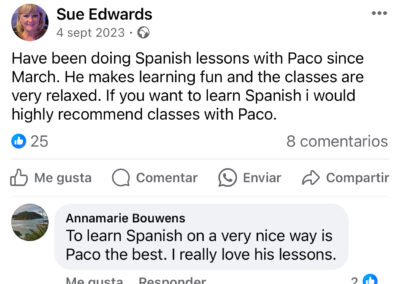 Twenty years of experience teaching Spanish with many happy students who can now comunicate in spanish. A school located in Mojacar (Almeria) south of Spain, and now online.