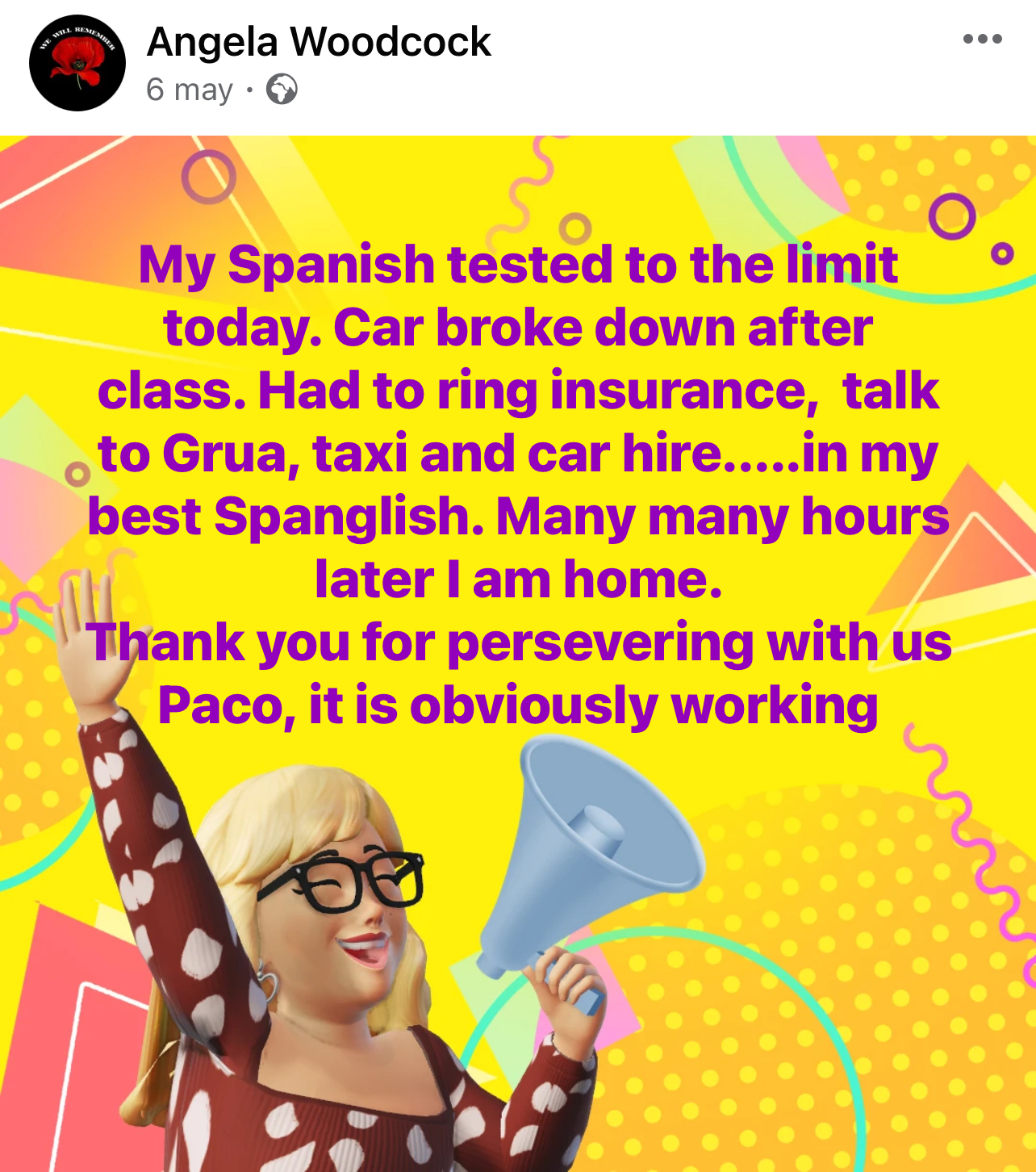 To start from the beginning to the end, improving your Spanish.