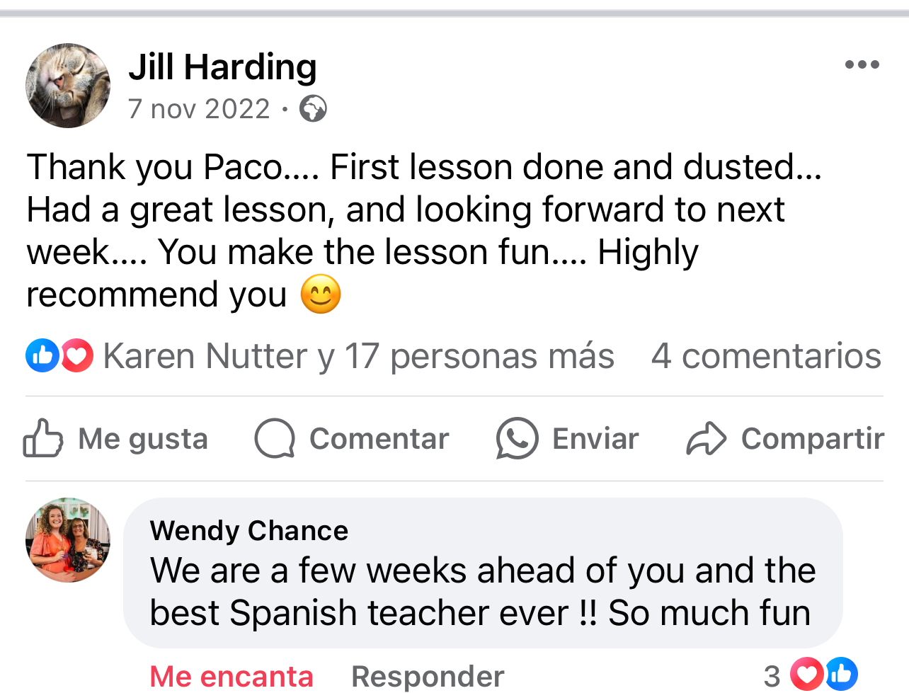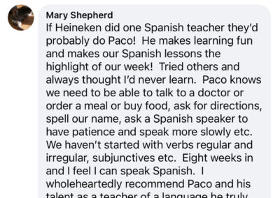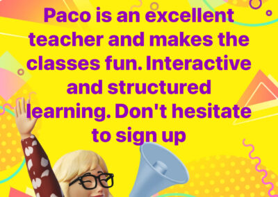 You will learn basic expressions for conversations in places you frequent every day and how to build your own sentences in Spanish in a fun way. Join my online classes via ZOOM for individual (one to one) or groups and enjoy learning Spanish.
